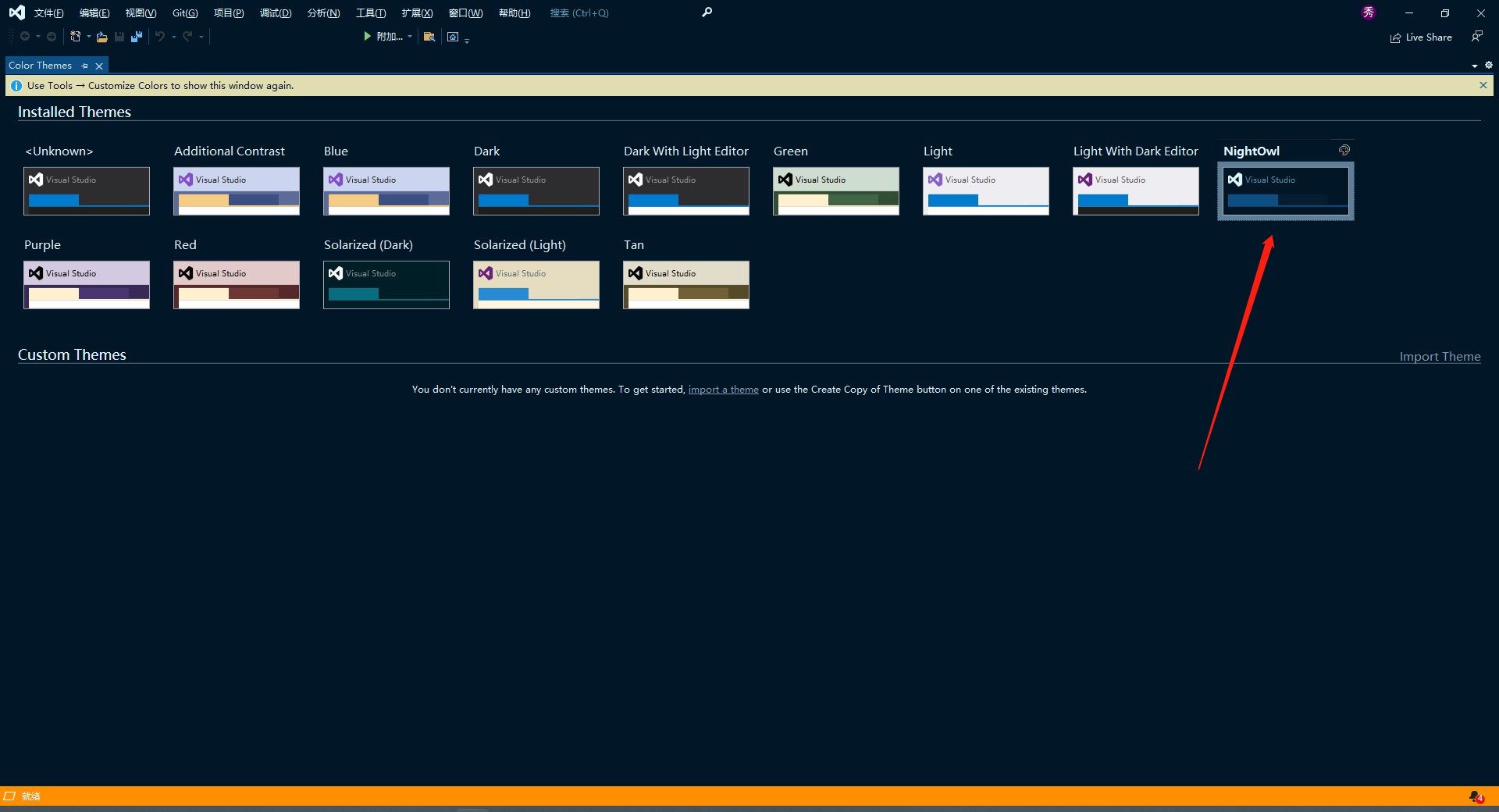那么如何设置vs2019也能NightOwl呢?【这里以NightOwl主题为例】,废话不多说见下文